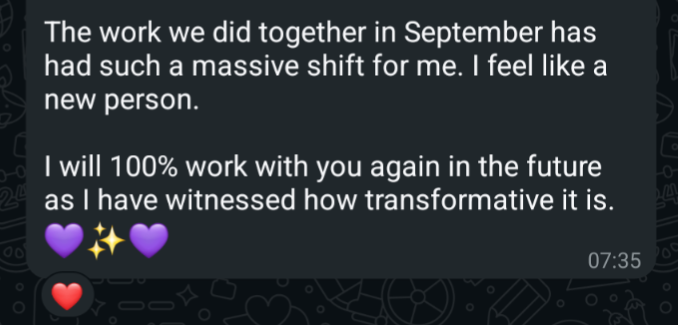 It’s about integrating what’s still unresolved, reconnecting with your inner self, and stepping forward in a new, embodied way with support that feels powerfully different.