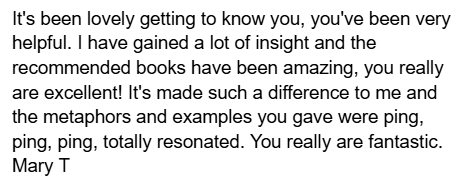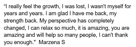 With a unique blend of professional life coaching, hypnotherapy, NLP, positive psychology, somatic healing, counselling & mental health skills.